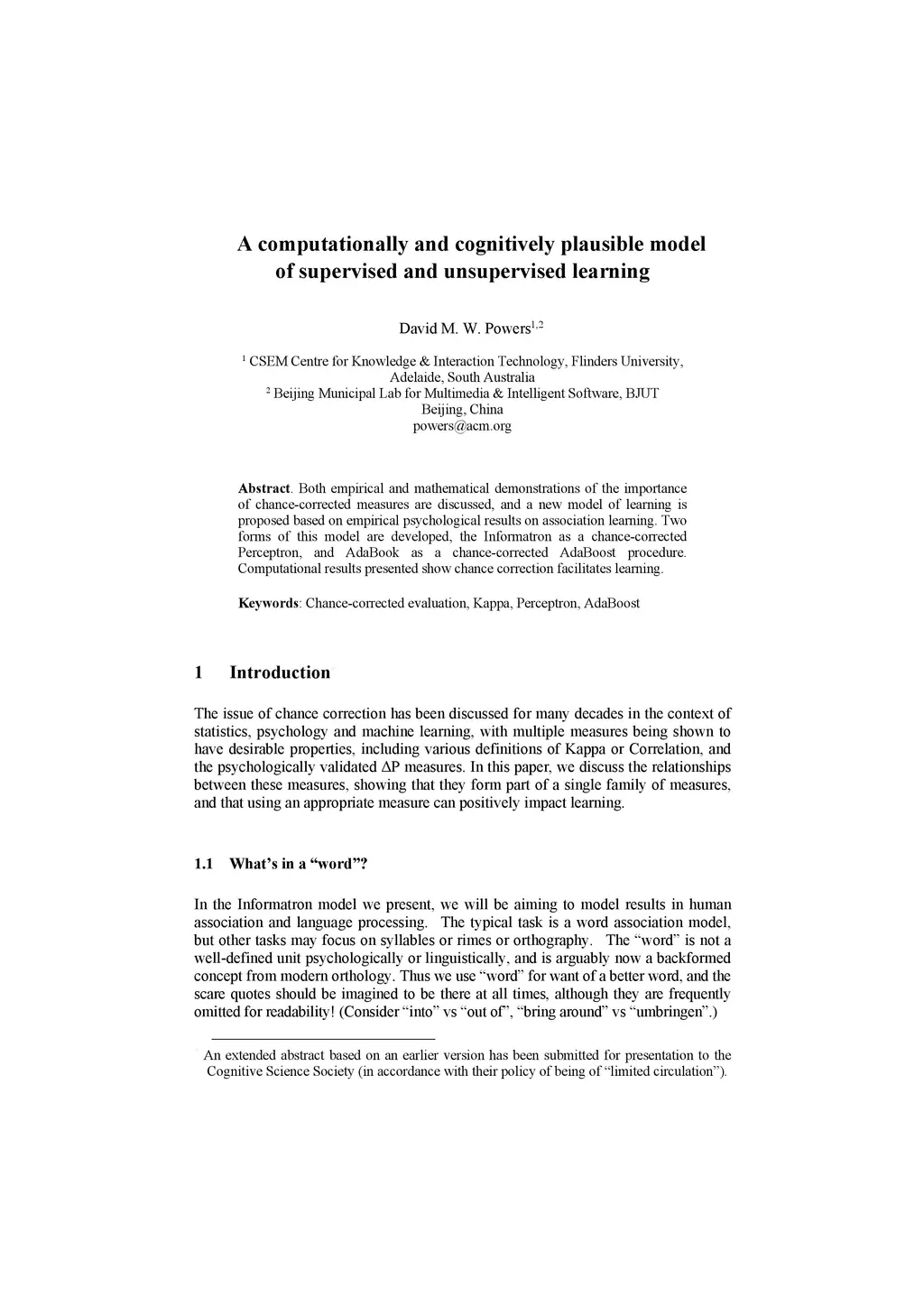 Both empirical and mathematical demonstrations of the importance of chance-corrected measures are discussed, and a new model of learning is proposed based on empirical psychological results on association learning. Two forms of this model are developed, the Informatron as a chance-corrected Perceptron, and AdaBook as a chance-corrected AdaBoost procedure. Computational results presented show chance correction facilitates learning.