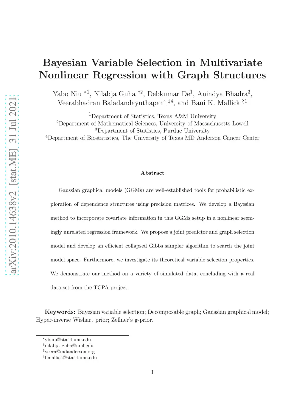 Gaussian graphical models (GGMs) are well-established tools for probabilistic exploration of dependence structures using precision matrices. We develop a Bayesian method to incorporate covariate information in this GGMs setup in a nonlinear seemingly unrelated regression framework. We propose a joint predictor and graph selection model and develop an efficient collapsed Gibbs sampler algorithm to search the joint model space. Furthermore, we investigate its theoretical variable selection properties. We demonstrate our method on a variety of simulated data, concluding with a real data set from the TCPA project.