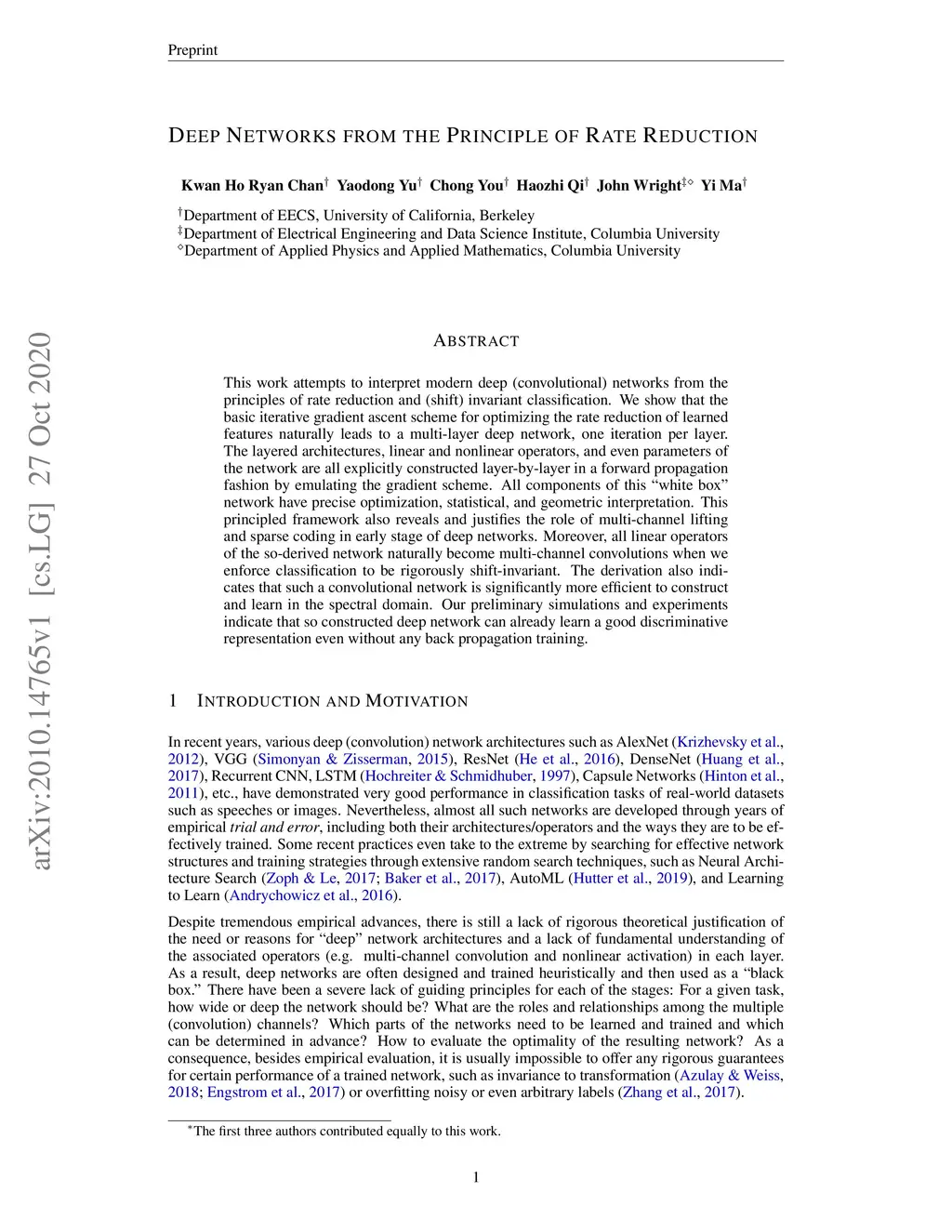 Deep Networks from the Principle of Rate Reduction