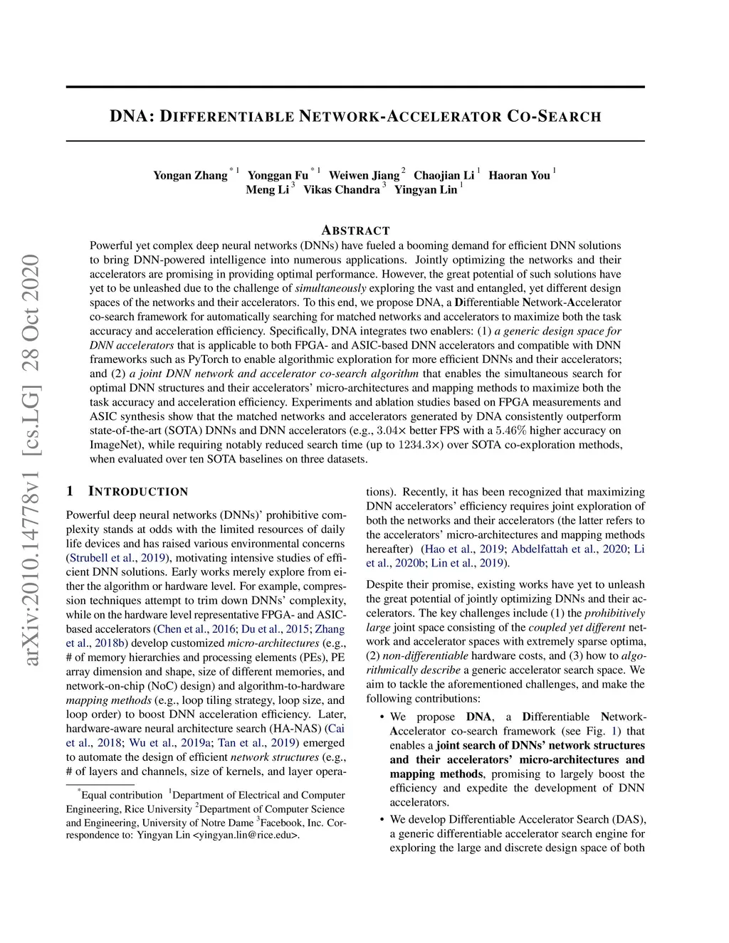 Powerful yet complex deep neural networks (DNNs) have fueled a booming demand for efficient DNN solutions to bring DNN-powered intelligence into numerous applications. Jointly optimizing the networks and their accelerators are promising in providing optimal performance. However, the great potential of such solutions have yet to be unleashed due to the challenge of simultaneously exploring the vast and entangled, yet different design spaces of the networks and their accelerators. To this end, we propose DNA, a Differentiable Network-Accelerator co-search framework for automatically searching for matched networks and accelerators to maximize both the task accuracy and acceleration efficiency. Specifically, DNA integrates two enablers: (1) a generic design space for DNN accelerators that is applicable to both FPGA- and ASIC-based DNN accelerators and compatible with DNN frameworks such as PyTorch to enable algorithmic exploration for more efficient DNNs and their accelerators; and (2) a joint DNN network and accelerator co-search algorithm that enables simultaneously searching for optimal DNN structures and their accelerators' micro-architectures and mapping methods to maximize both the task accuracy and acceleration efficiency. Experiments and ablation studies based on FPGA measurements and ASIC synthesis show that the matched networks and accelerators generated by DNA consistently outperform state-of-the-art (SOTA) DNNs and DNN accelerators (e.g., 3.04x better FPS with a 5.46% higher accuracy on ImageNet), while requiring notably reduced search time (up to 1234.3x) over SOTA co-exploration methods, when evaluated over ten SOTA baselines on three datasets. All codes will be released upon acceptance.