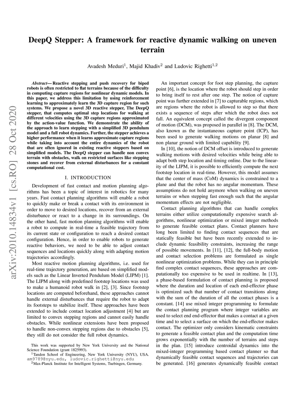 DeepQ Stepper: A framework for reactive dynamic walking on uneven