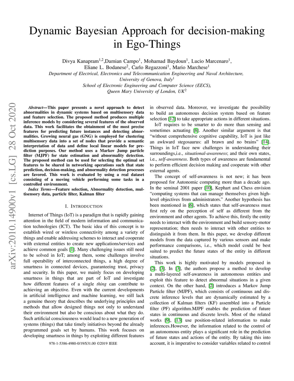 Dynamic Bayesian Approach for decision-making in Ego-Things