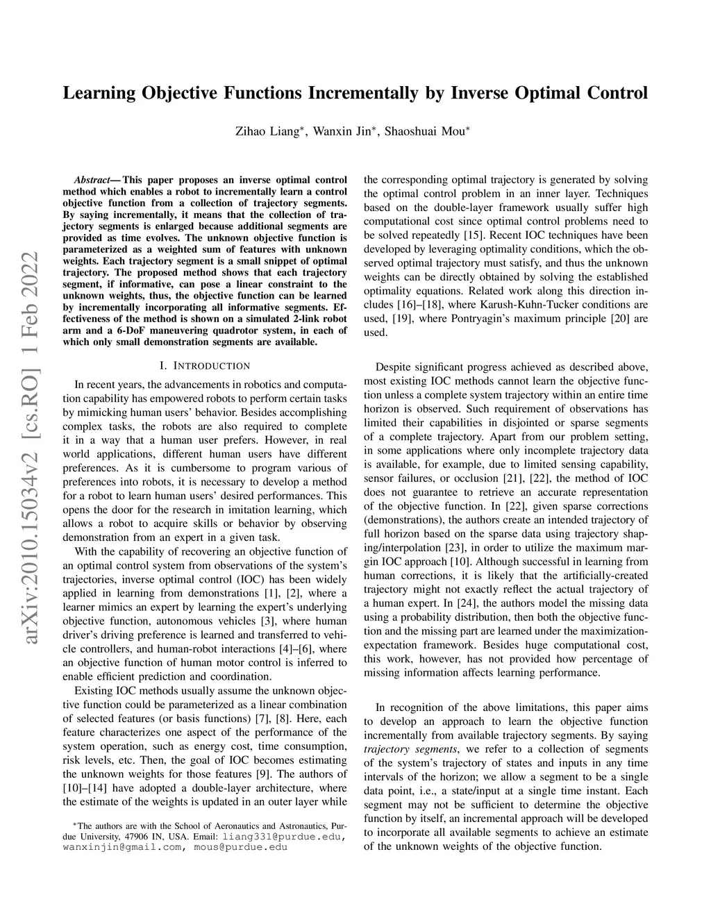 Learning Objective Functions Incrementally by Inverse Optimal Control