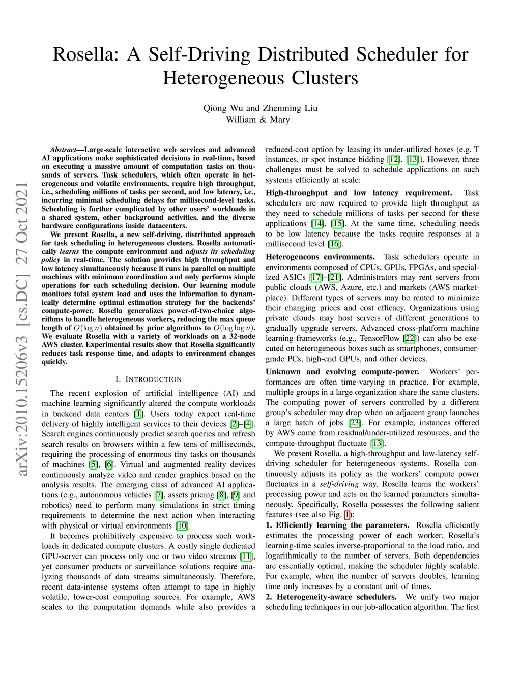 Rosella: A Self-Driving Distributed Scheduler for Heterogeneous Clusters