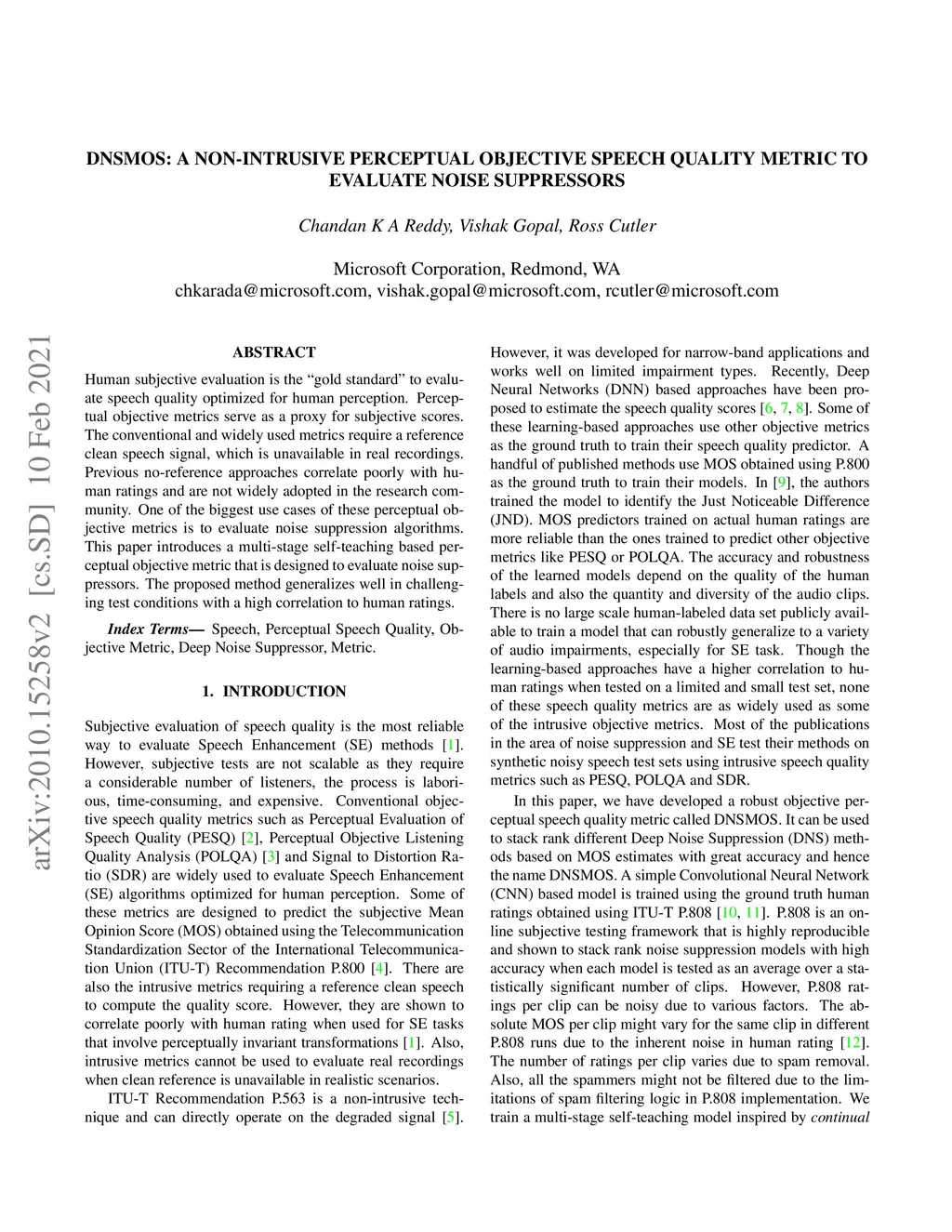 DNSMOS: A Non-Intrusive Perceptual Objective Speech Quality metric to evaluate Noise Suppressors