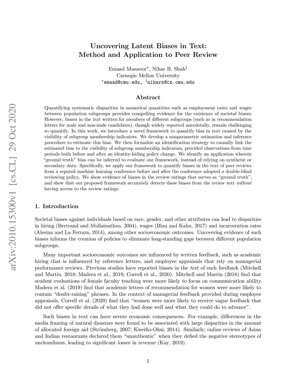 Uncovering Latent Biases in Text: Method and Application to Peer Review