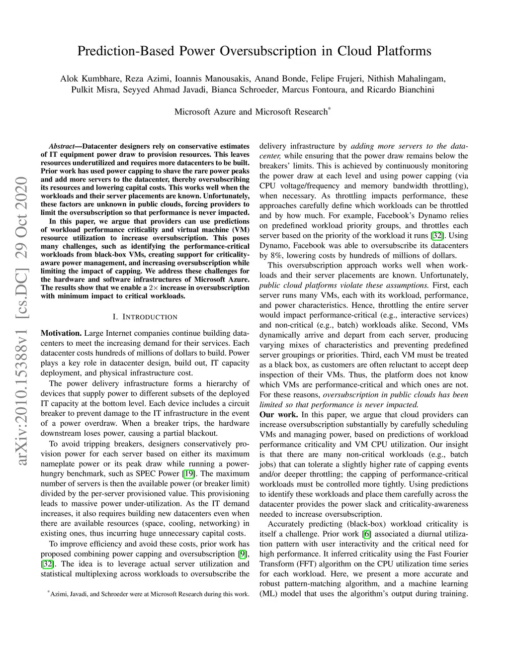 Prediction-Based Power Oversubscription in Cloud Platforms