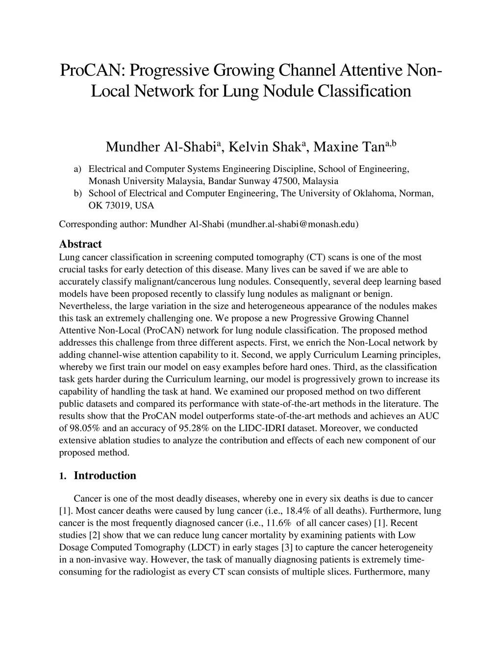 ProCAN: Progressive Growing Channel Attentive Non-Local Network for Lung