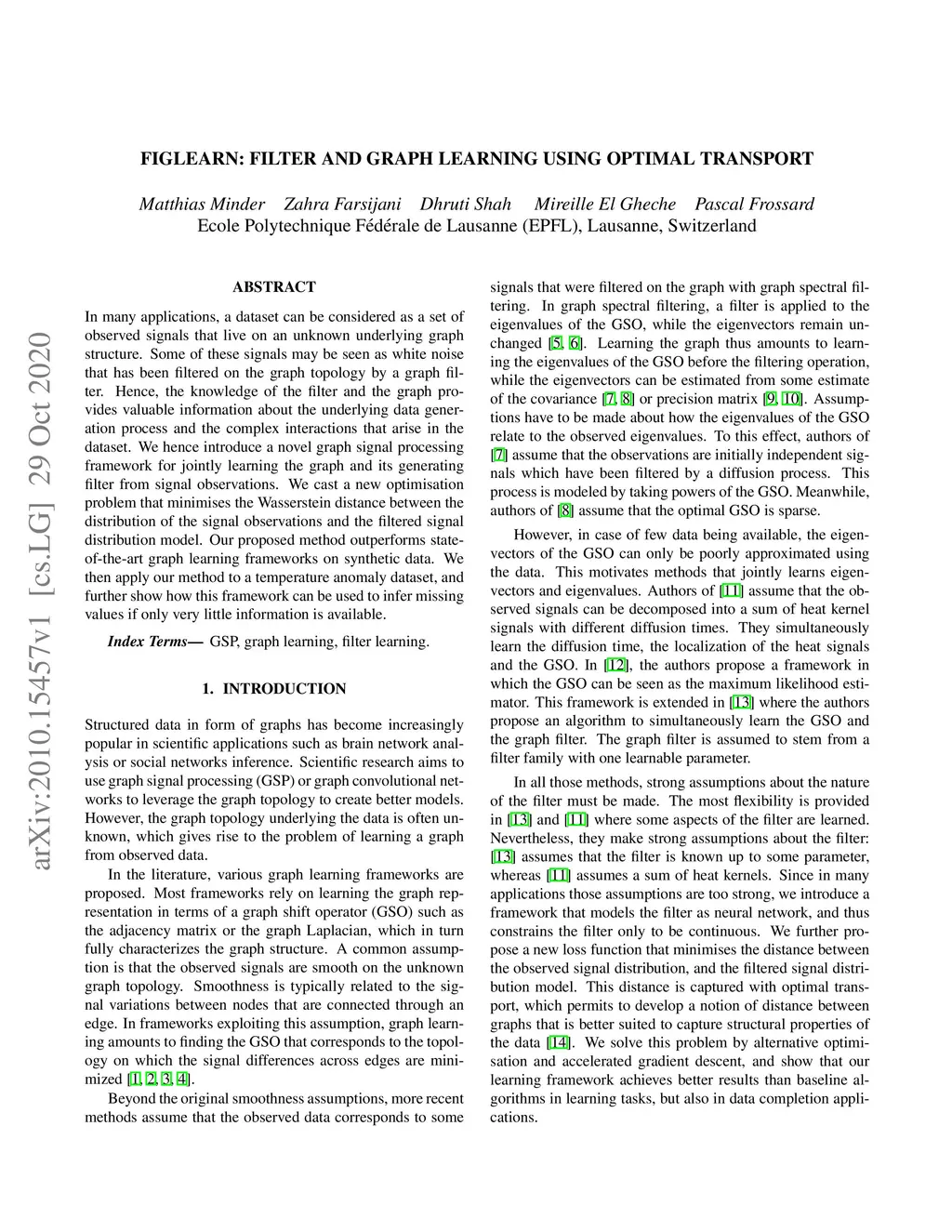 FiGLearn: Filter and Graph Learning using Optimal Transport