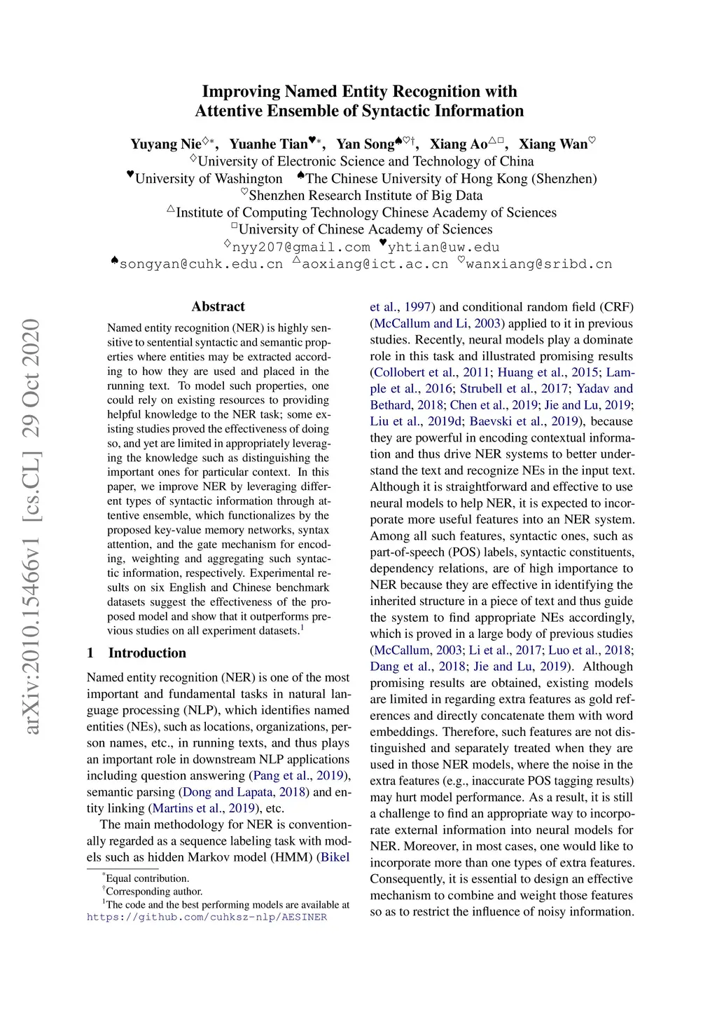 Improving Named Entity Recognition with Attentive Ensemble of Syntactic