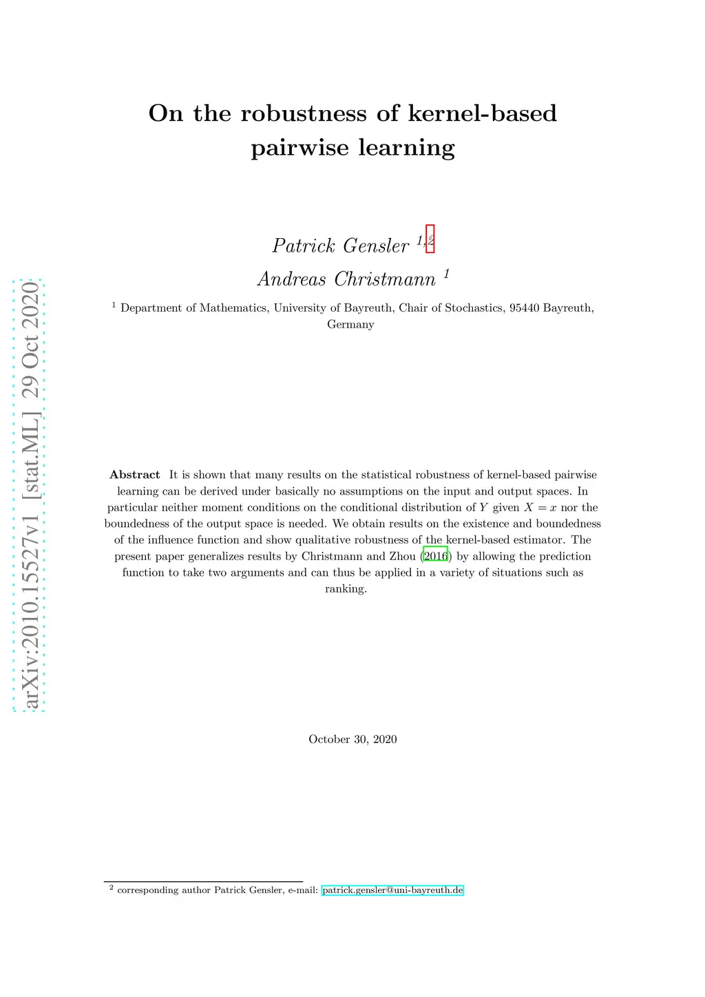 It is shown that many results on the statistical robustness of kernel-based pairwise learning can be derived under basically no assumptions on the input and output spaces. In particular neither moment conditions on the conditional distribution of Y given X = x nor the boundedness of the output space is needed. We obtain results on the existence and boundedness of the influence function and show qualitative robustness of the kernel-based estimator. The present paper generalizes results by Christmann and Zhou (2016) by allowing the prediction function to take two arguments and can thus be applied in a variety of situations such as ranking.