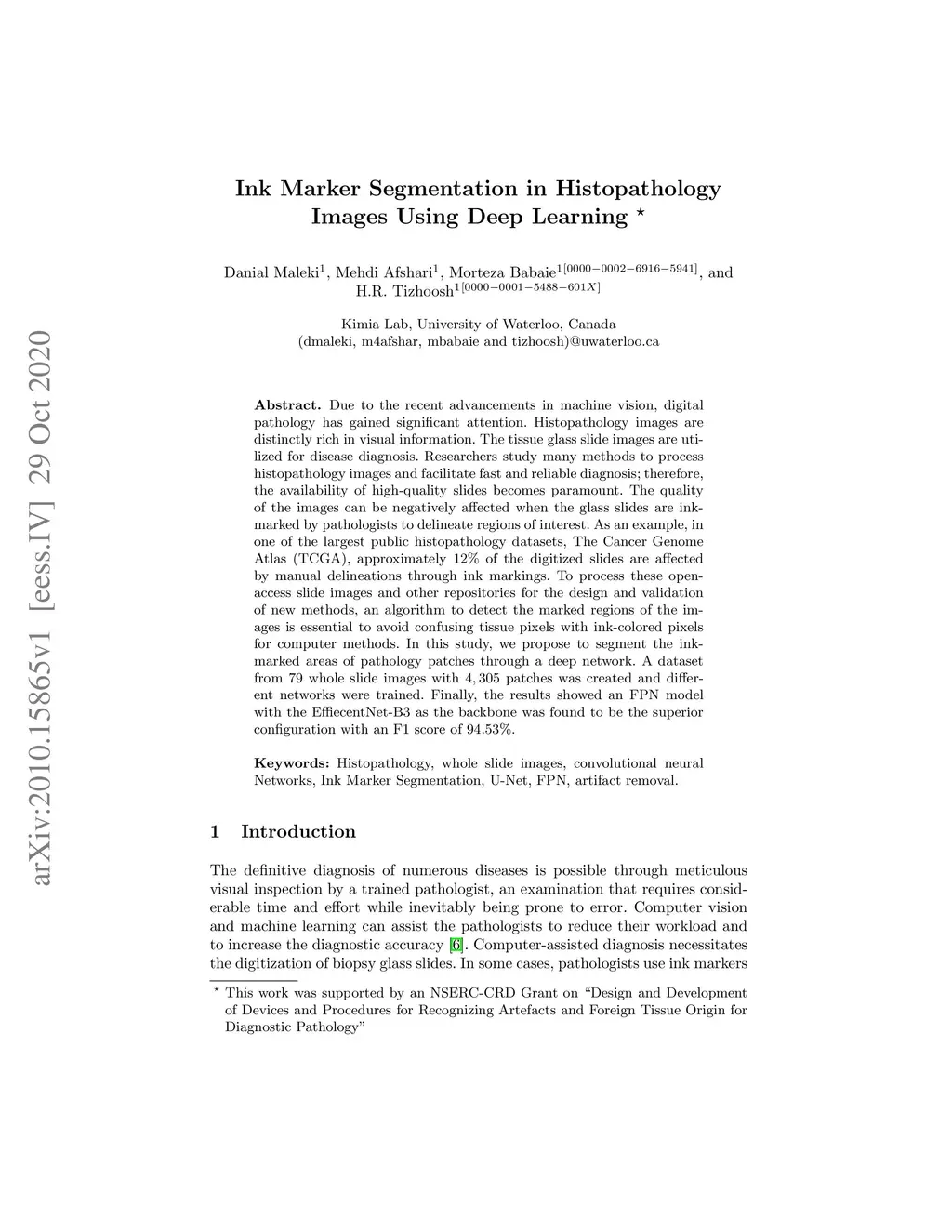 Ink Marker Segmentation in Histopathology Images Using Deep Learning
