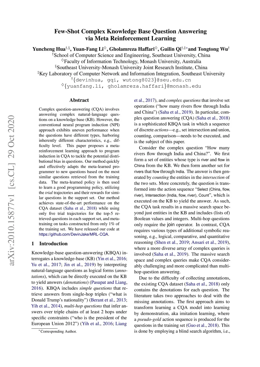 Few-Shot Complex Knowledge Base Question Answering via Meta