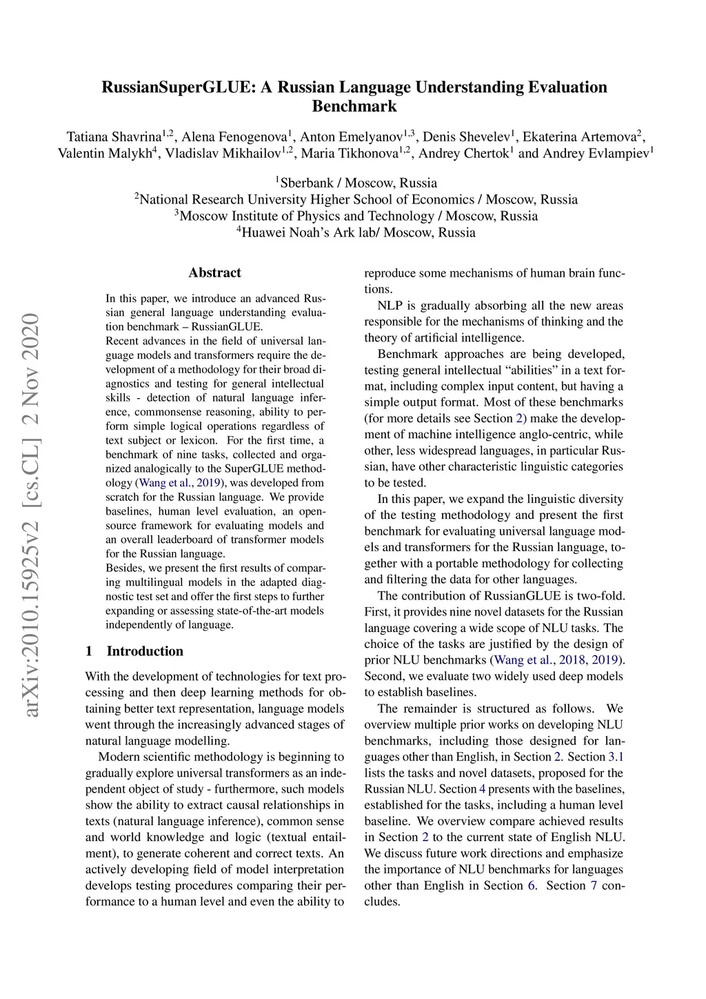 RussianSuperGLUE: A Russian Language Understanding Evaluation Benchmark