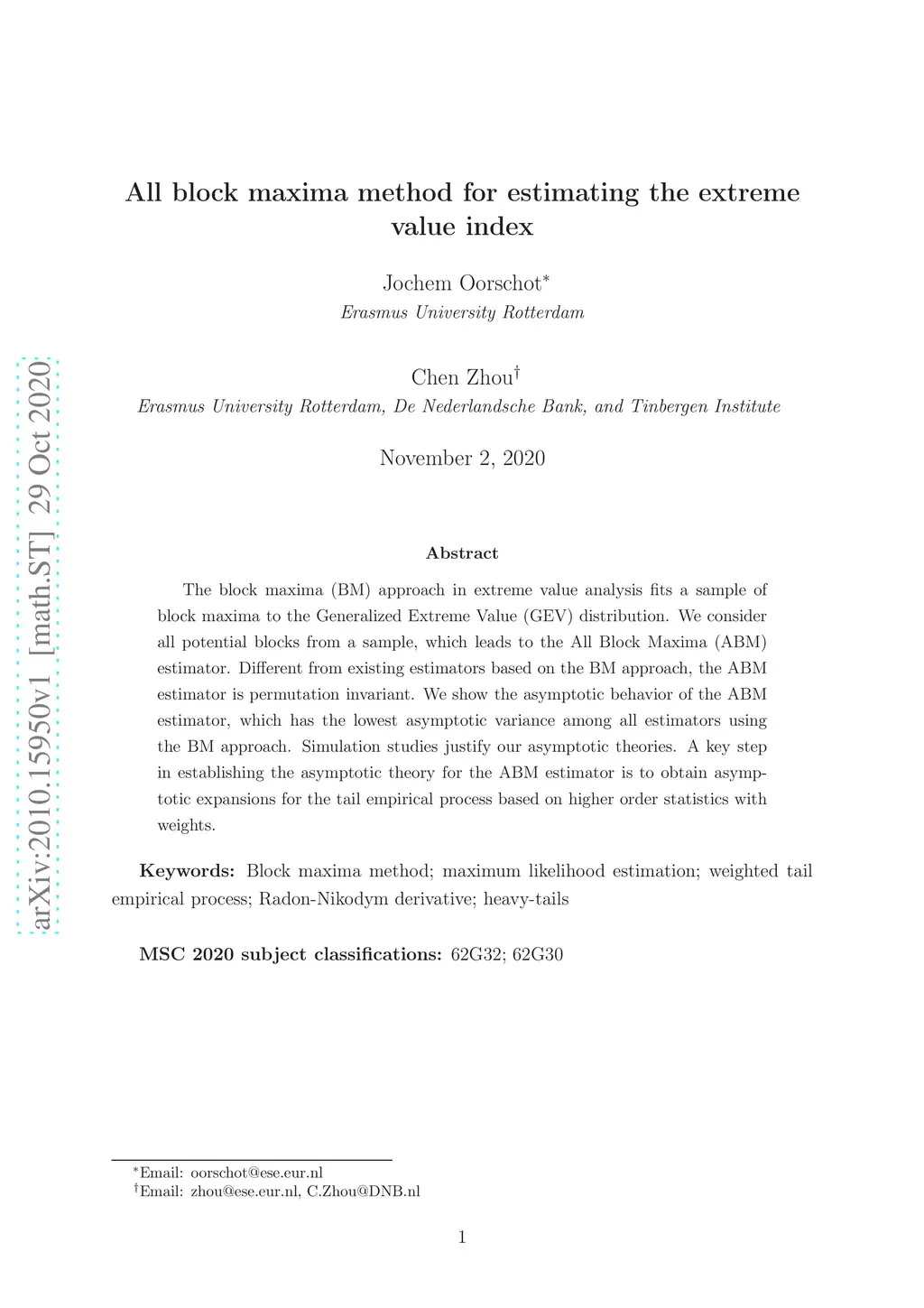 The block maxima (BM) approach in extreme value analysis fits a sample of block maxima to the Generalized Extreme Value (GEV) distribution. We consider all potential blocks from a sample, which leads to the All Block Maxima (ABM) estimator. Different from existing estimators based on the BM approach, the ABM estimator is permutation invariant. We show the asymptotic behavior of the ABM estimator, which has the lowest asymptotic variance among all estimators using the BM approach. Simulation studies justify our asymptotic theories. A key step in establishing the asymptotic theory for the ABM estimator is to obtain asymptotic expansions for the tail empirical process based on higher order statistics with weights.