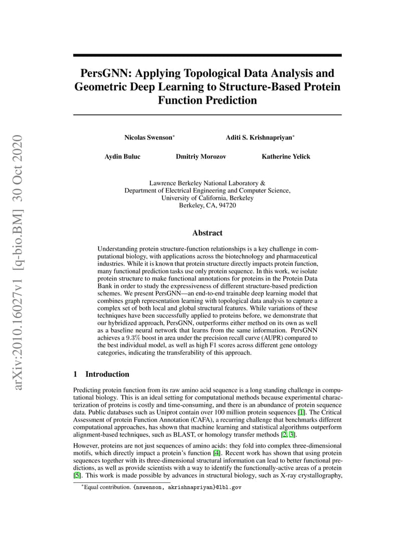 Understanding protein structure-function relationships is a key challenge in computational biology, with applications across the biotechnology and pharmaceutical industries. While it is known that protein structure directly impacts protein function, many functional prediction tasks use only protein sequence. In this work, we isolate protein structure to make functional annotations for proteins in the Protein Data Bank in order to study the expressiveness of different structure-based prediction schemes. We present PersGNN - an end-to-end trainable deep learning model that combines graph representation learning with topological data analysis to capture a complex set of both local and global structural features. While variations of these techniques have been successfully applied to proteins before, we demonstrate that our hybridized approach, PersGNN, outperforms either method on its own as well as a baseline neural network that learns from the same information. PersGNN achieves a 9.3% boost in area under the precision recall curve (AUPR) compared to the best individual model, as well as high F1 scores across different gene ontology categories, indicating the transferability of this approach.