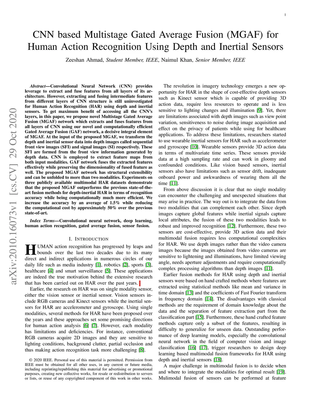 CNN based Multistage Gated Average Fusion (MGAF) for Human Action