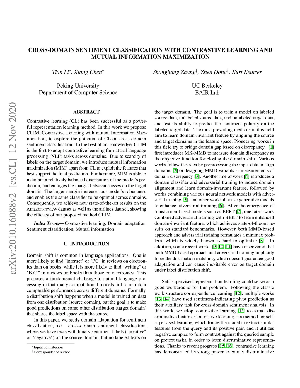 Cross-Domain Sentiment Classification with Contrastive Learning and