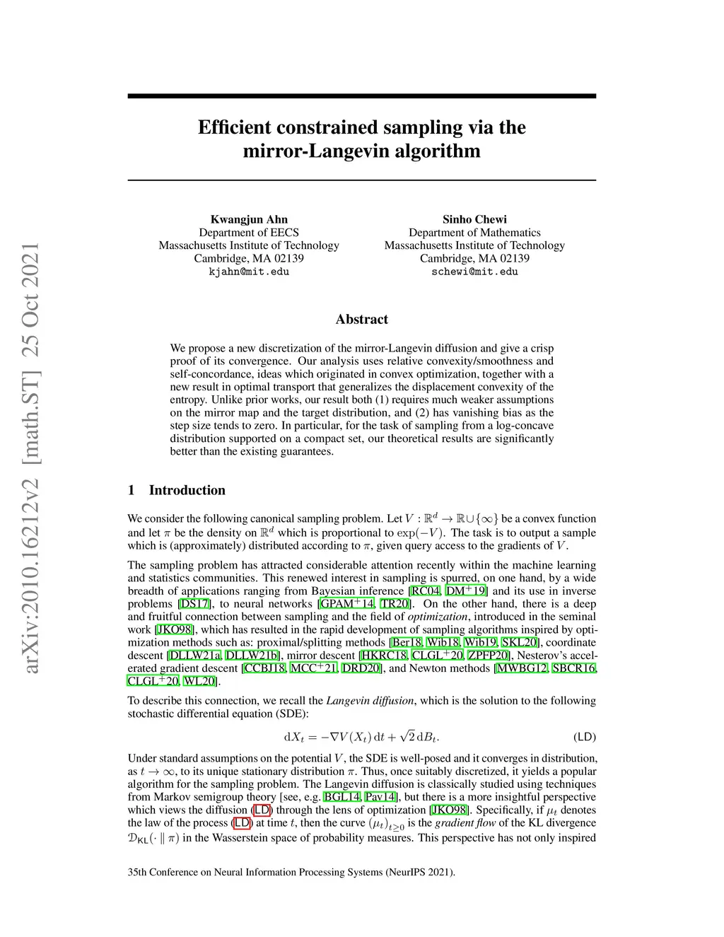 We propose a new discretization of the mirror-Langevin diffusion and give a crisp proof of its convergence. Our analysis uses relative convexity/smoothness and self-concordance, ideas which originated in convex optimization, together with a new result in optimal transport that generalizes the displacement convexity of the entropy. Unlike prior works, our result both (1) requires much weaker assumptions on the mirror map and the target distribution, and (2) has vanishing bias as the step size tends to zero. In particular, for the task of sampling from a log-concave distribution supported on a compact set, our theoretical results are significantly better than the existing guarantees.