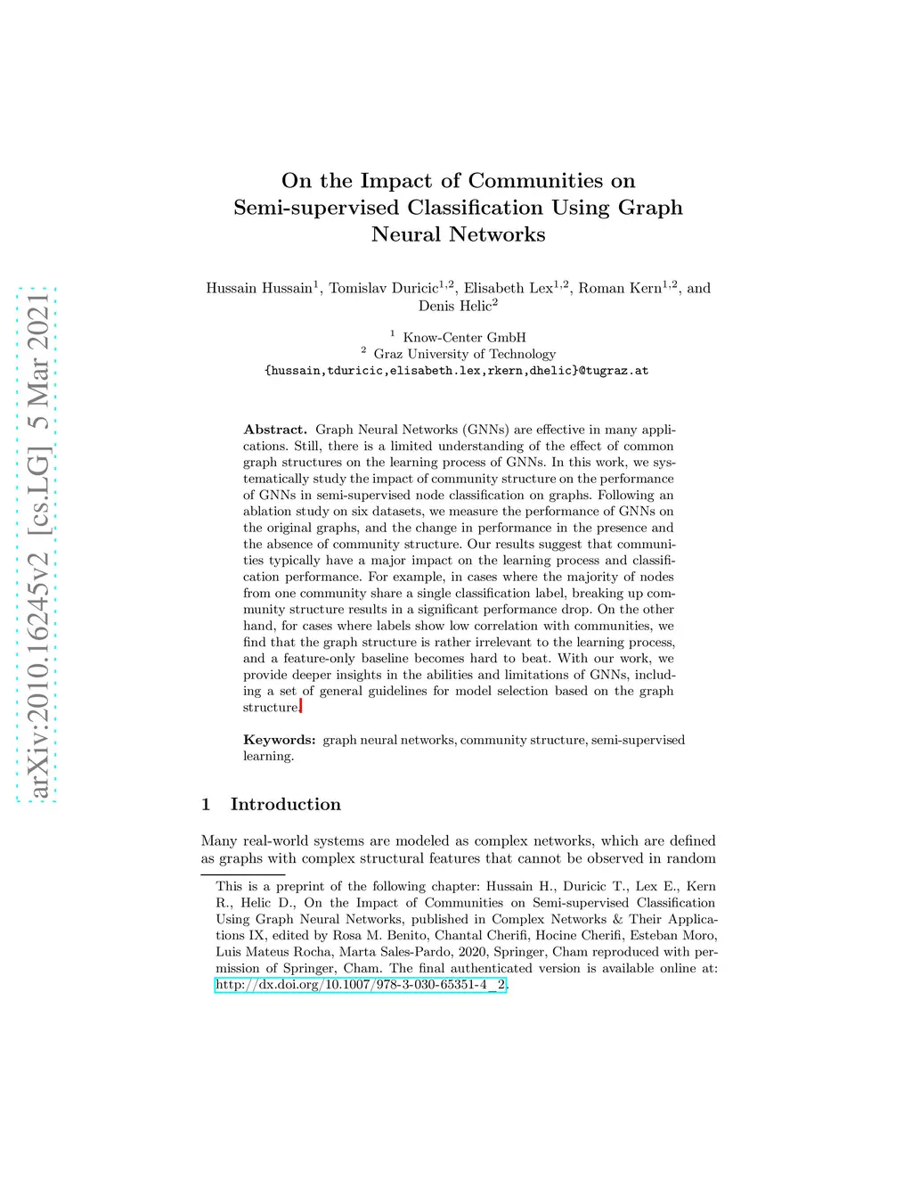 On the Impact of Communities on Semi-supervised Classification Using Graph Neural Networks