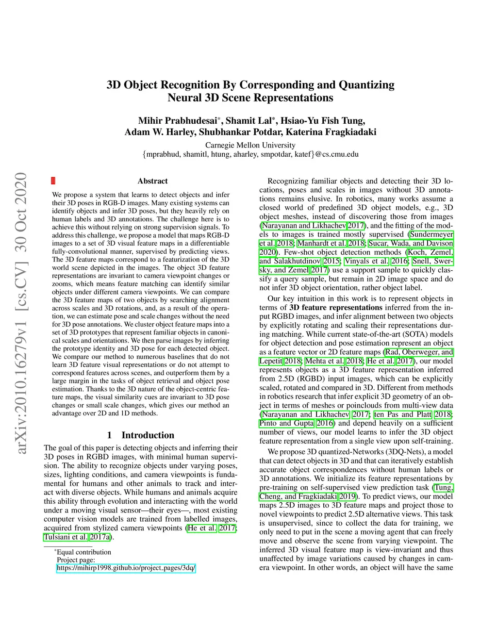 3D Object Recognition By Corresponding and Quantizing Neural 3D Scene