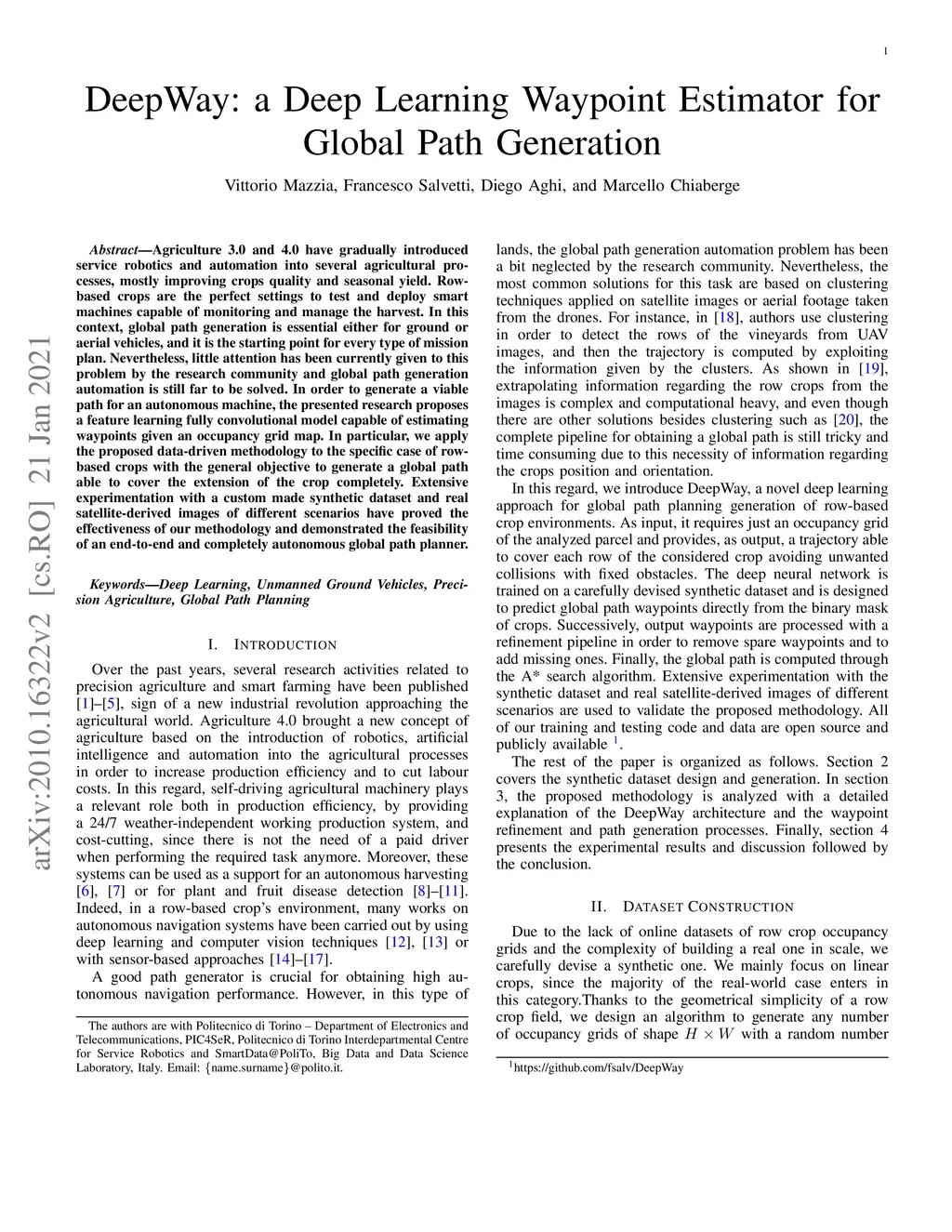 DeepWay: a Deep Learning Waypoint Estimator for Global Path Generation
