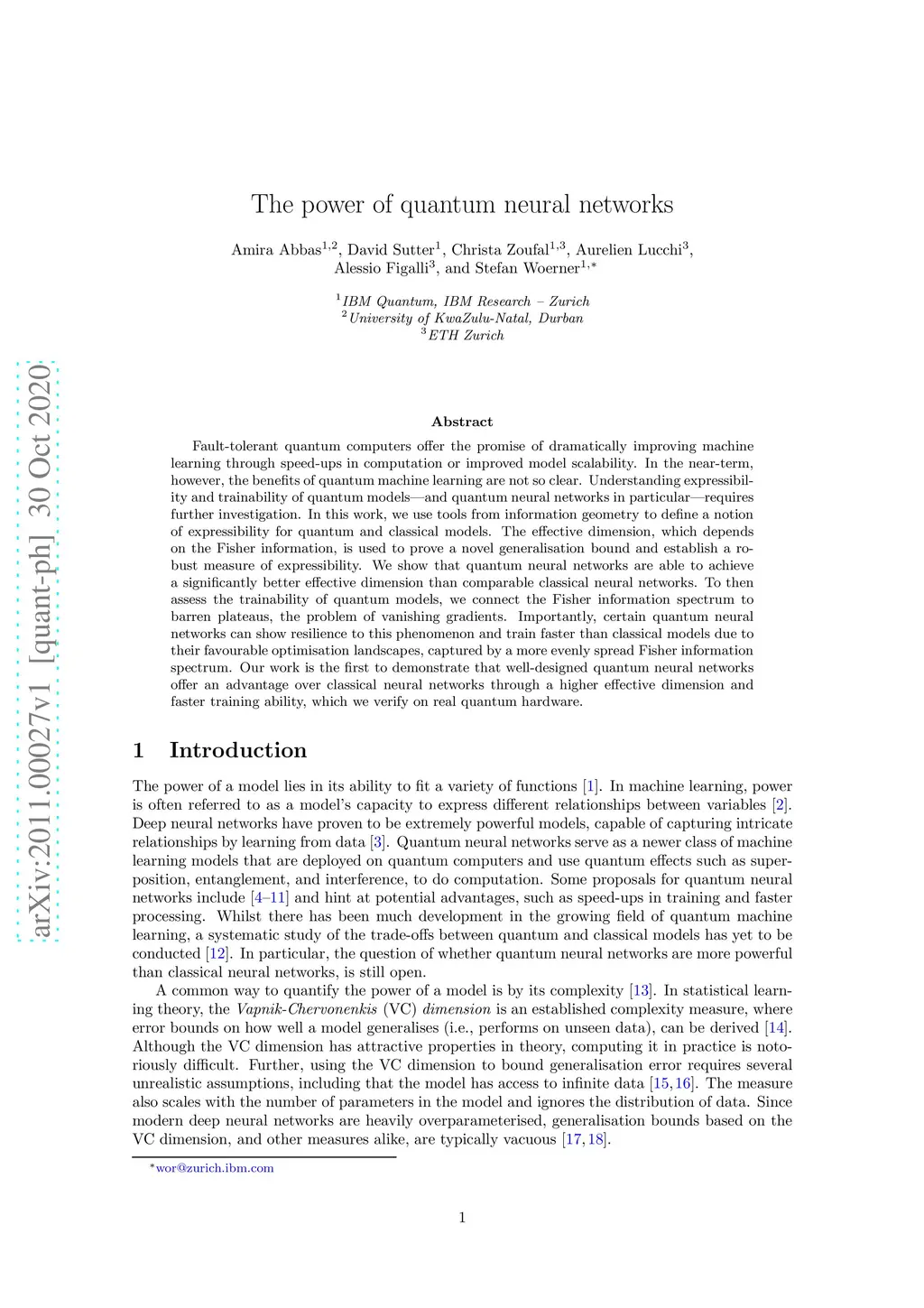 Fault-tolerant quantum computers offer the promise of dramatically improving machine learning through speed-ups in computation or improved model scalability. In the near-term, however, the benefits of quantum machine learning are not so clear. Understanding expressibility and trainability of quantum models-and quantum neural networks in particular-requires further investigation. In this work, we use tools from information geometry to define a notion of expressibility for quantum and classical models. The effective dimension, which depends on the Fisher information, is used to prove a novel generalisation bound and establish a robust measure of expressibility. We show that quantum neural networks are able to achieve a significantly better effective dimension than comparable classical neural networks. To then assess the trainability of quantum models, we connect the Fisher information spectrum to barren plateaus, the problem of vanishing gradients. Importantly, certain quantum neural networks can show resilience to this phenomenon and train faster than classical models due to their favourable optimisation landscapes, captured by a more evenly spread Fisher information spectrum. Our work is the first to demonstrate that well-designed quantum neural networks offer an advantage over classical neural networks through a higher effective dimension and faster training ability, which we verify on real quantum hardware.