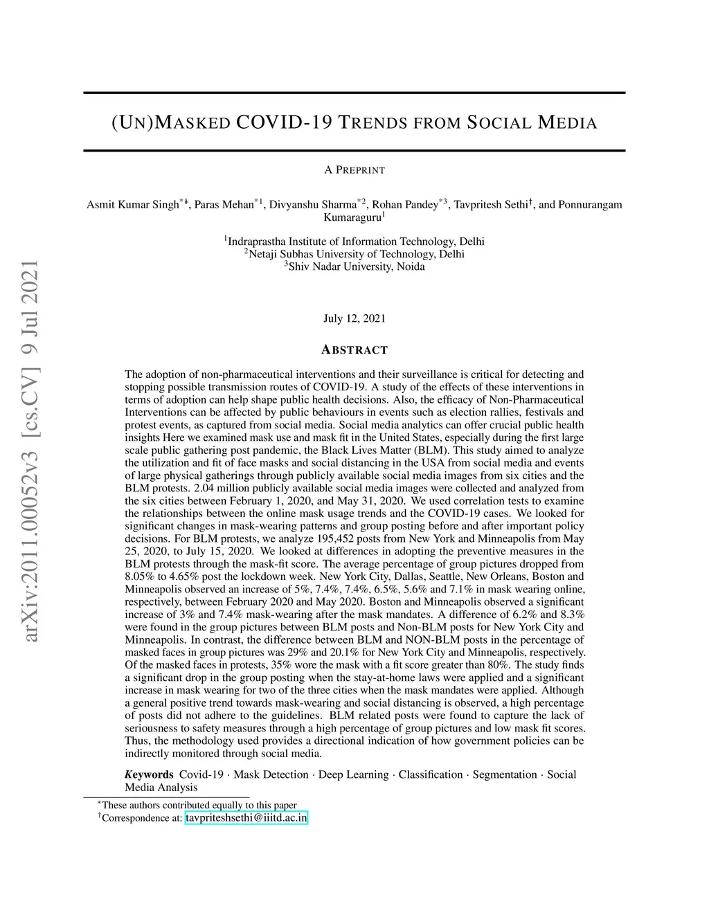 (Un)Masked COVID-19 Trends from Social Media