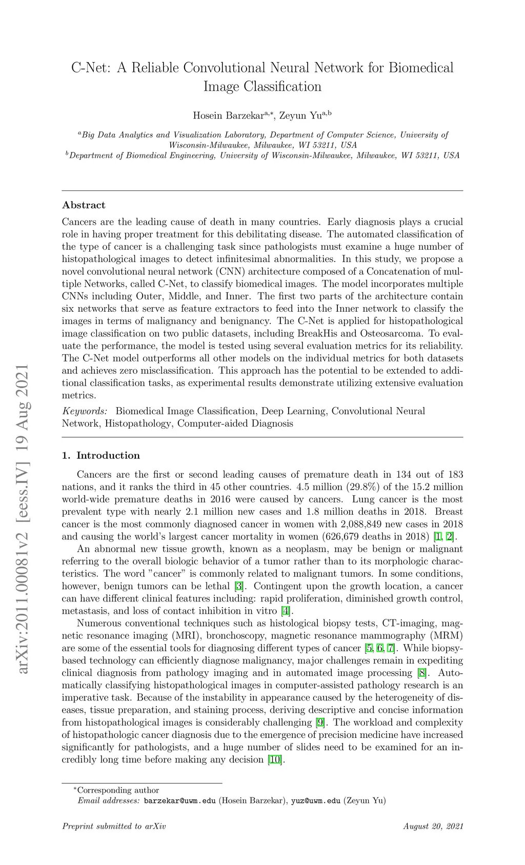C-Net: A Reliable Convolutional Neural Network for Biomedical Image