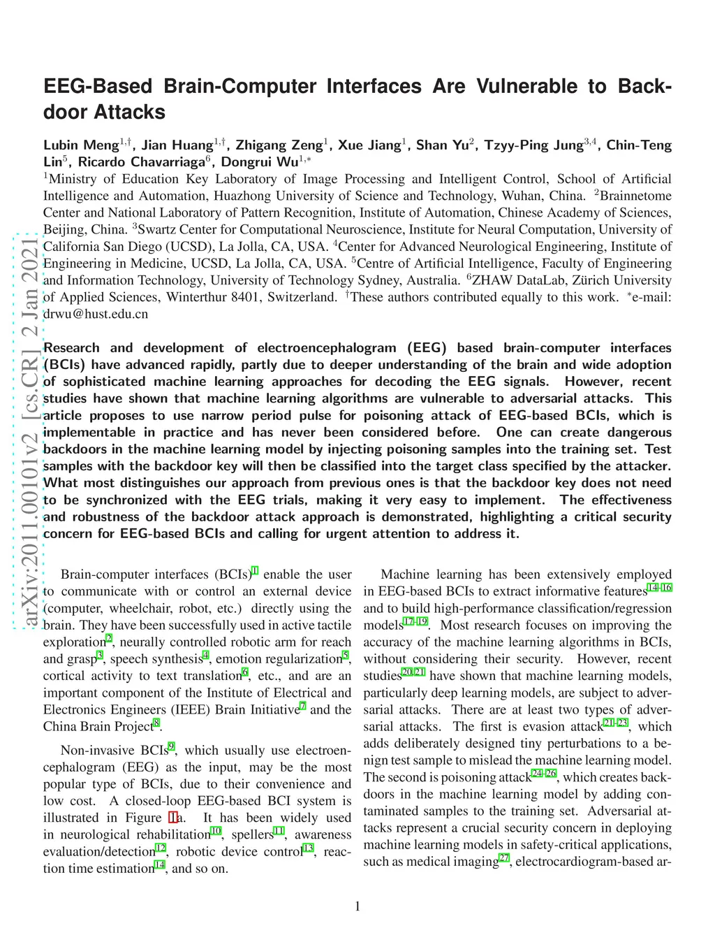 EEG-Based Brain-Computer Interfaces Are Vulnerable to Backdoor Attacks