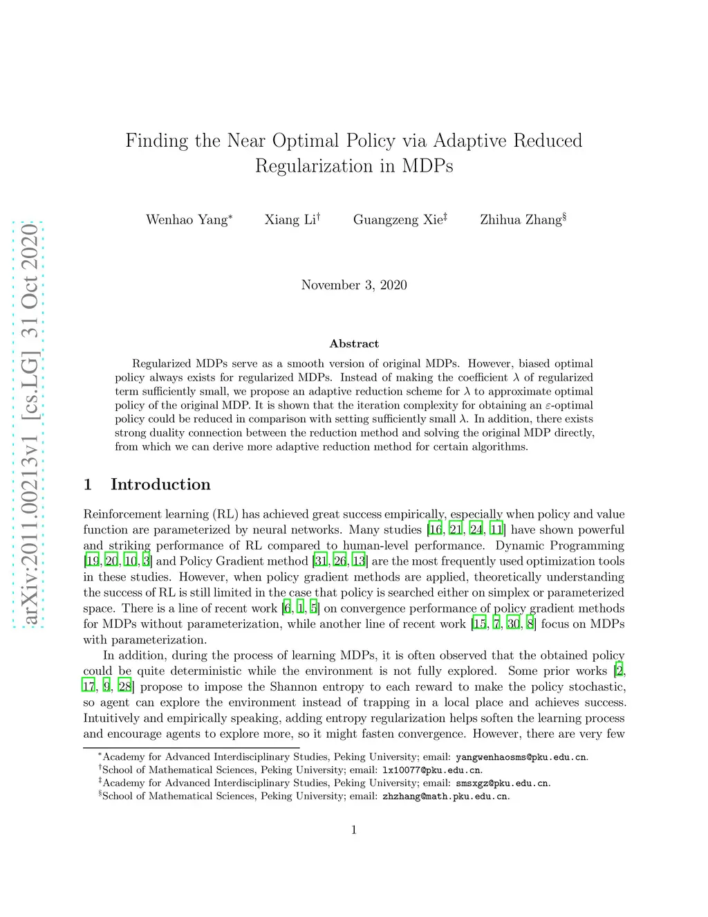 Finding the Near Optimal Policy via Adaptive Reduced Regularization in