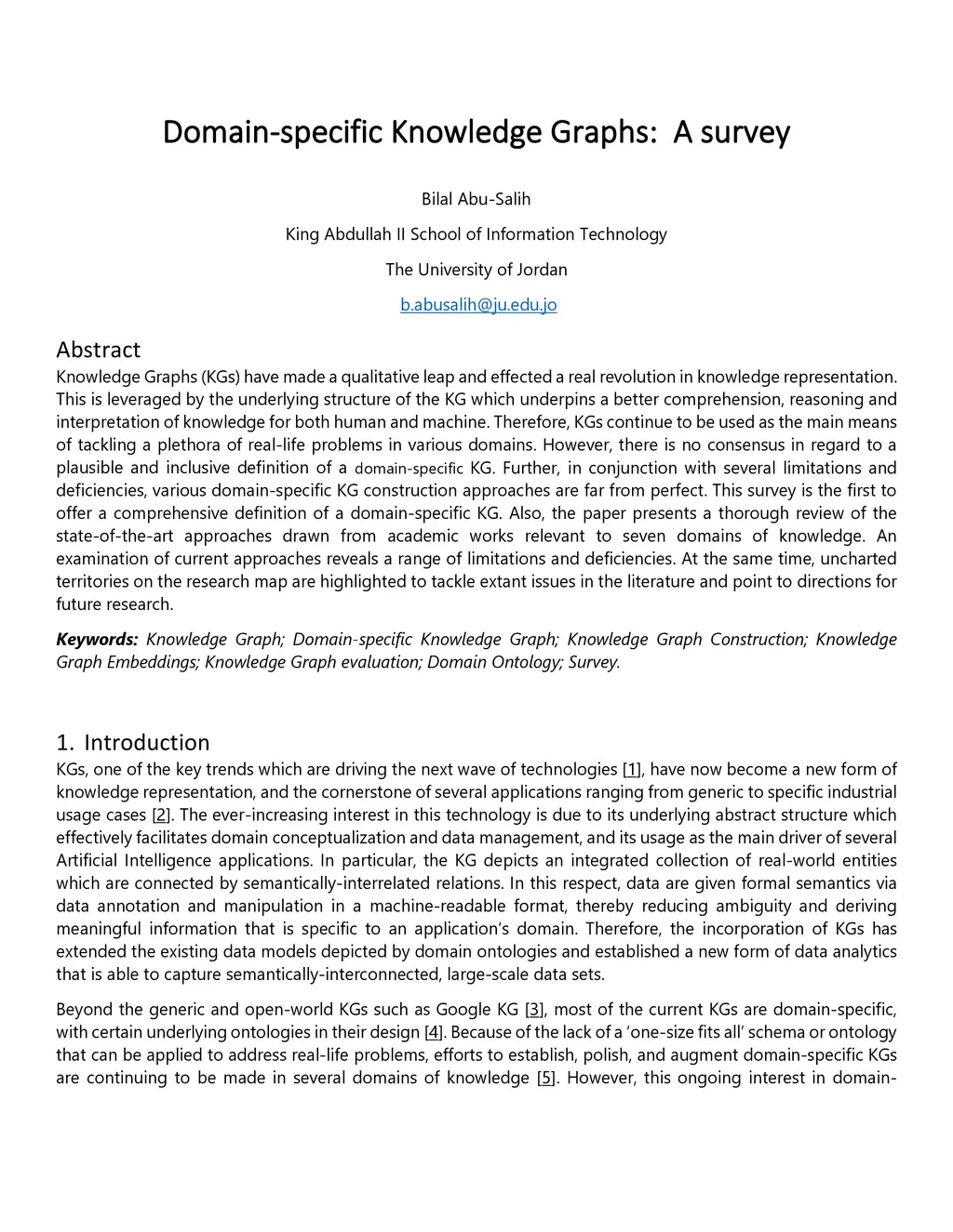 Domain-specific Knowledge Graphs: A survey