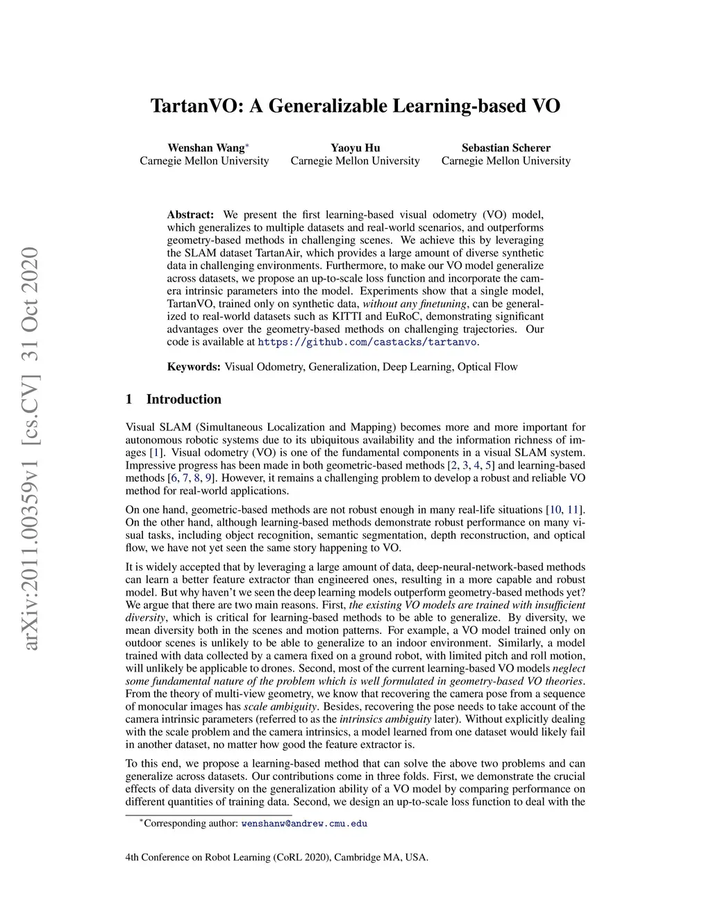 TartanVO: A Generalizable Learning-based VO