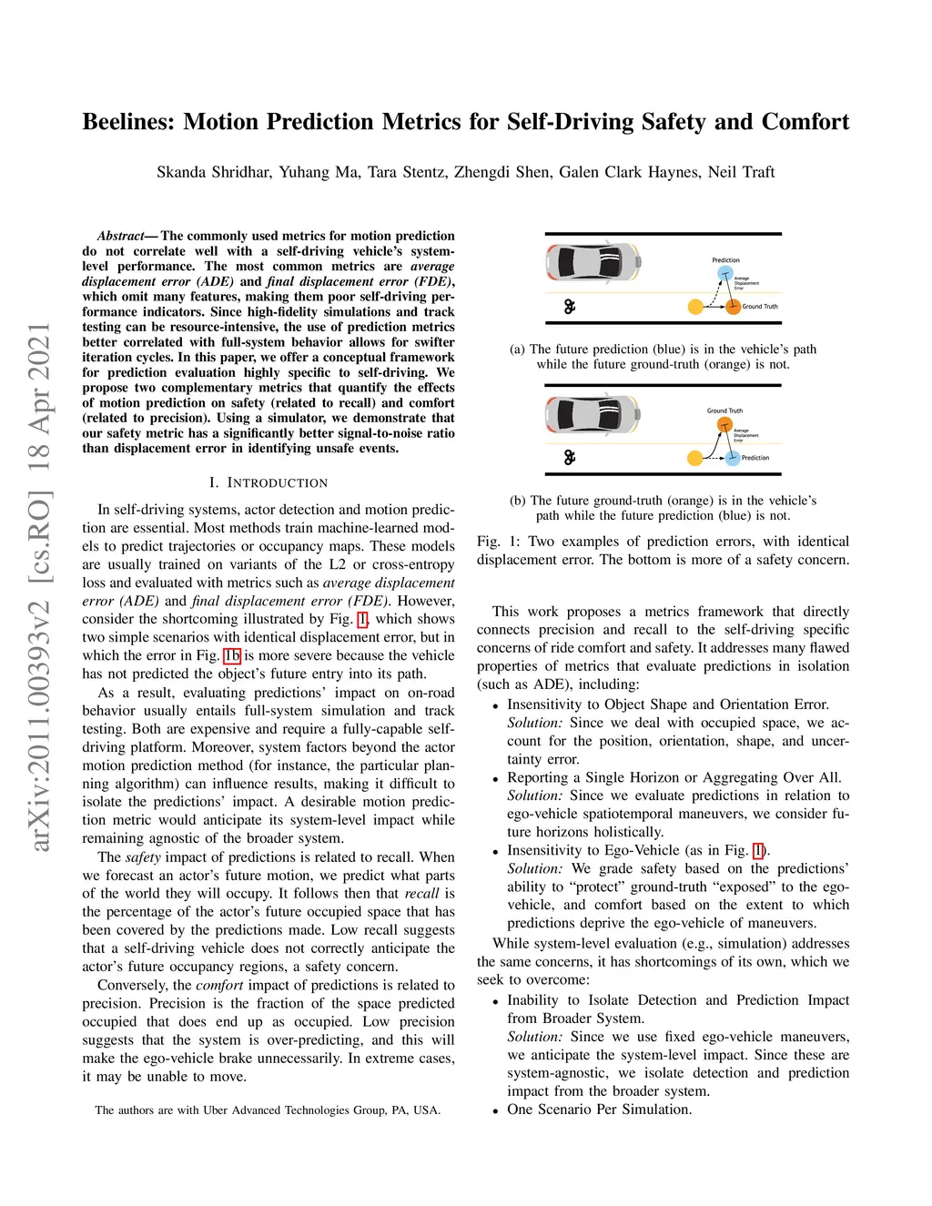 Beelines: Motion Prediction Metrics for Self-Driving Safety and Comfort