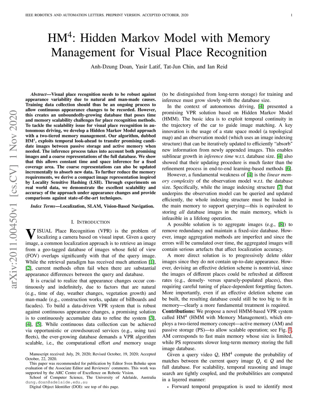 HM4: Hidden Markov Model with Memory Management for Visual Place