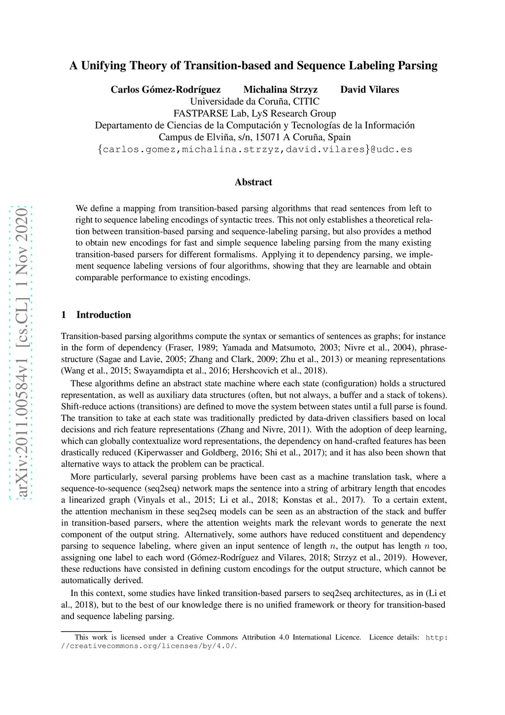 A Unifying Theory of Transition-based and Sequence Labeling Parsing
