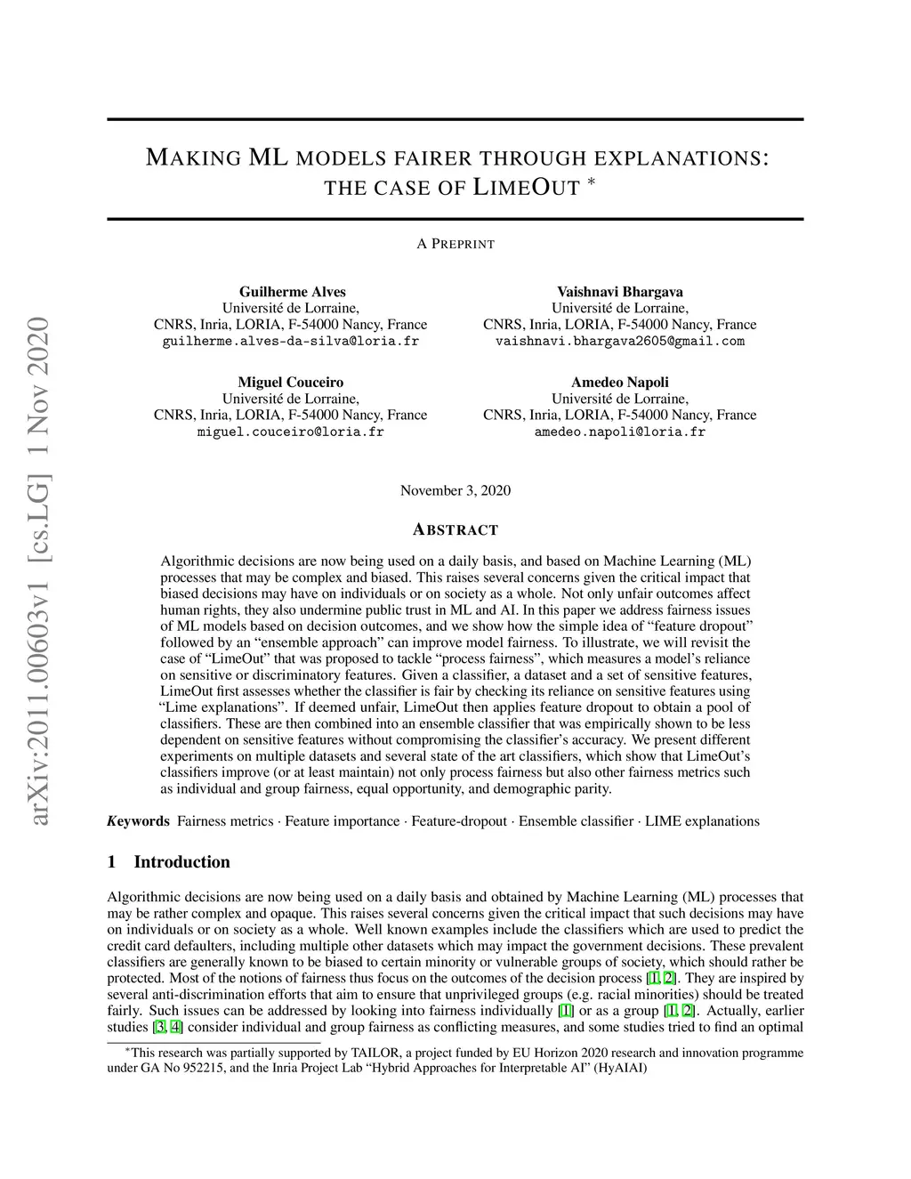 Algorithmic decisions are now being used on a daily basis, and based on Machine Learning (ML) processes that may be complex and biased. This raises several concerns given the critical impact that biased decisions may have on individuals or on society as a whole. Not only unfair outcomes affect human rights, they also undermine public trust in ML and AI. In this paper we address fairness issues of ML models based on decision outcomes, and we show how the simple idea of "feature dropout" followed by an "ensemble approach" can improve model fairness. To illustrate, we will revisit the case of "LimeOut" that was proposed to tackle "process fairness", which measures a model's reliance on sensitive or discriminatory features. Given a classifier, a dataset and a set of sensitive features, LimeOut first assesses whether the classifier is fair by checking its reliance on sensitive features using "Lime explanations". If deemed unfair, LimeOut then applies feature dropout to obtain a pool of classifiers. These are then combined into an ensemble classifier that was empirically shown to be less dependent on sensitive features without compromising the classifier's accuracy. We present different experiments on multiple datasets and several state of the art classifiers, which show that LimeOut's classifiers improve (or at least maintain) not only process fairness but also other fairness metrics such as individual and group fairness, equal opportunity, and demographic parity.
