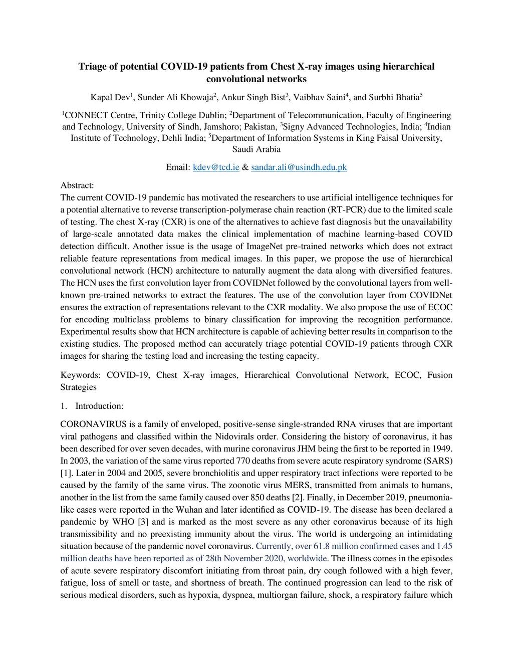 Triage of Potential COVID-19 Patients from Chest X-ray Images using