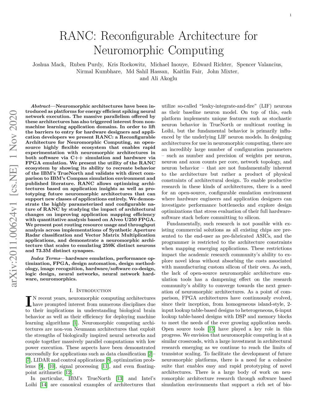 RANC: Reconfigurable Architecture for Neuromorphic Computing