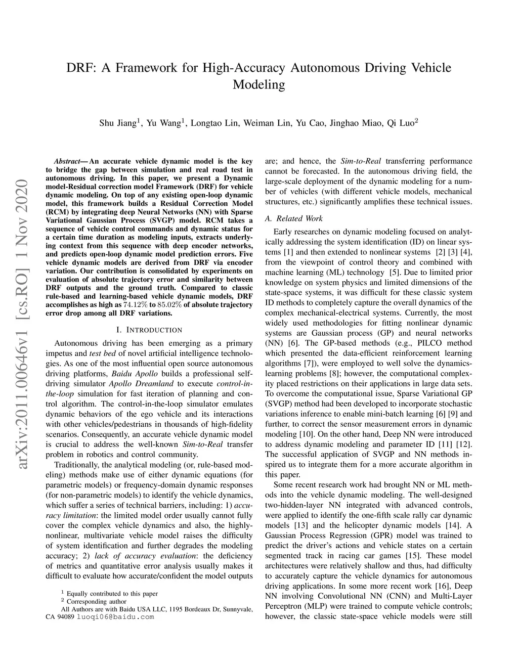 DRF: A Framework for High-Accuracy Autonomous Driving Vehicle Modeling