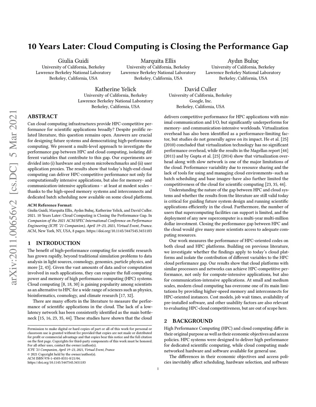 10 Years Later: Cloud Computing is Closing the Performance Gap