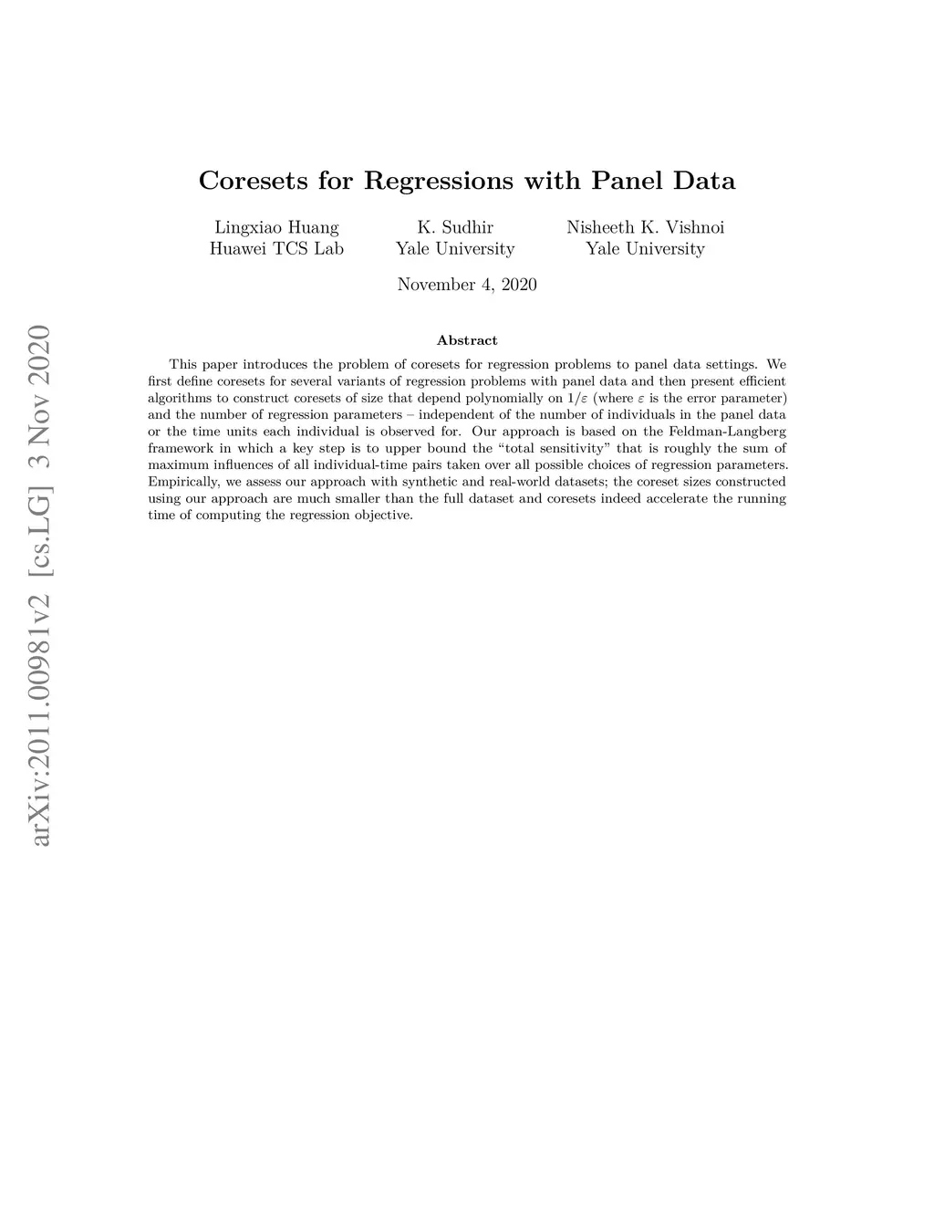 Coresets for Regressions with Panel Data