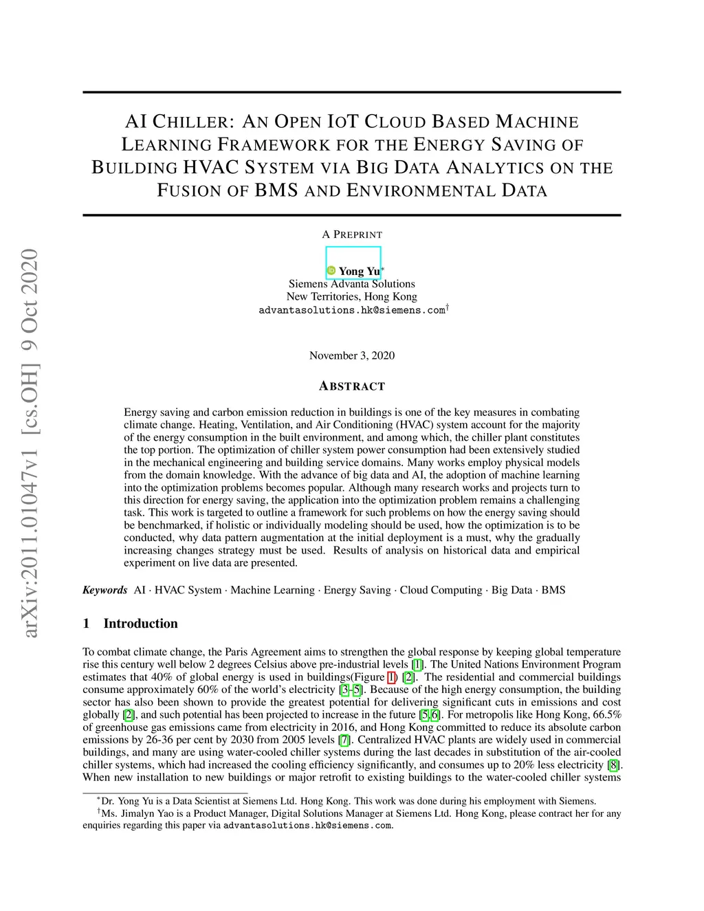 Energy Saving of Building HVAC System via Big Data Analytics on the Fusion of