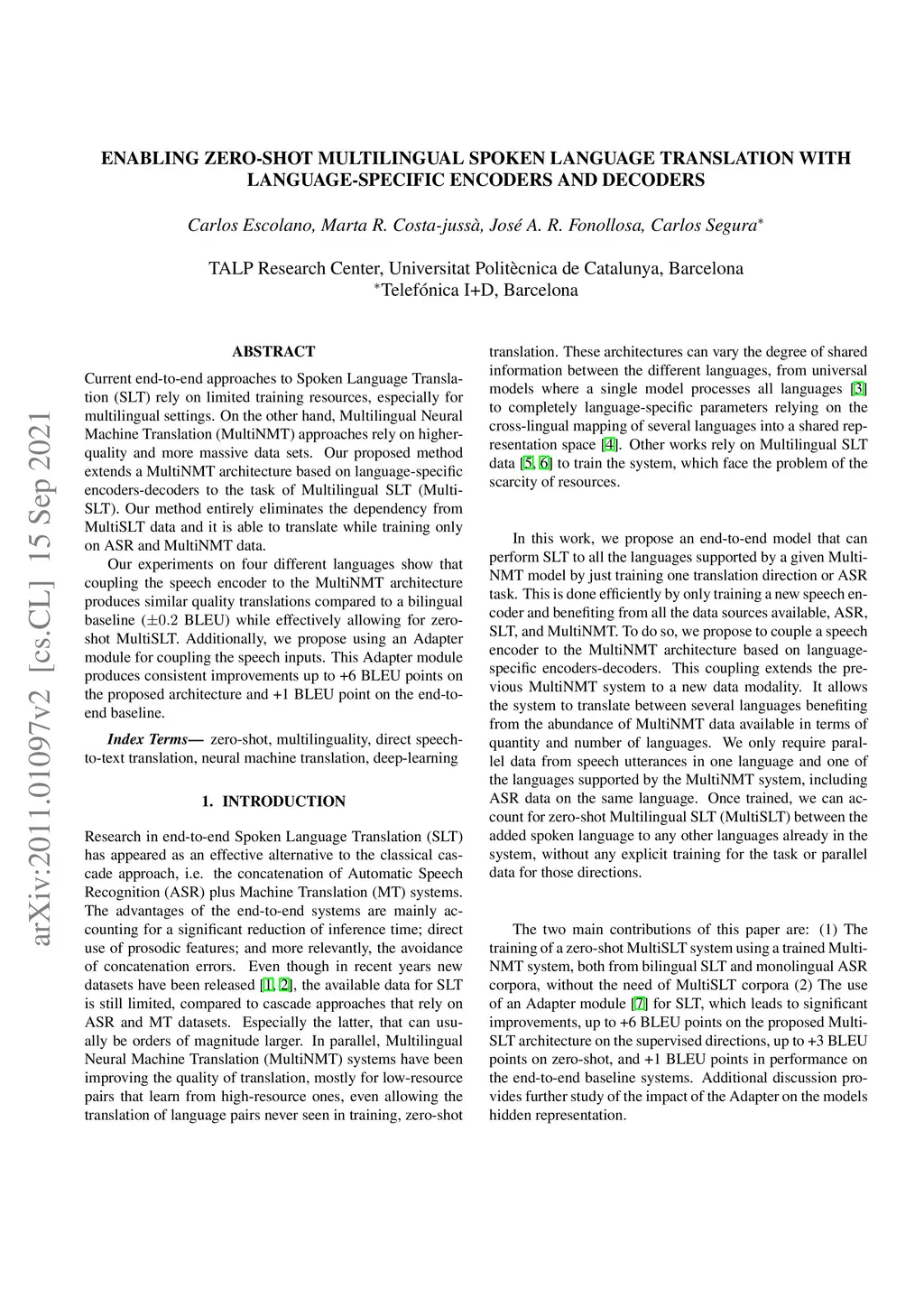 Enabling Zero-shot Multilingual Spoken Language Translation with