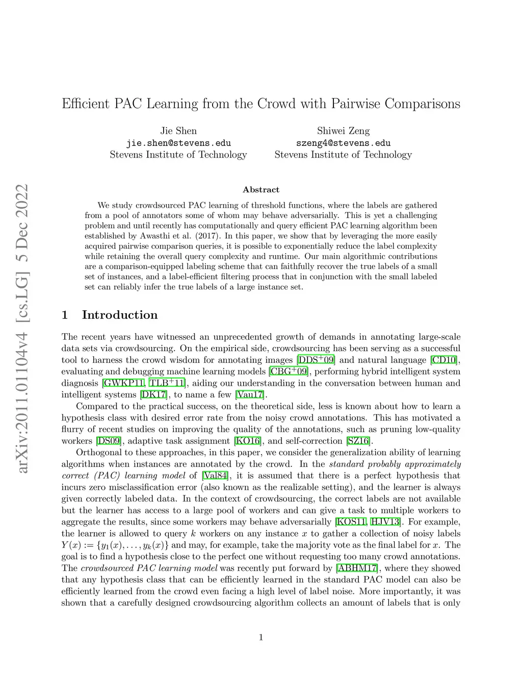 Efficient PAC Learning from the Crowd with Pairwise Comparisons