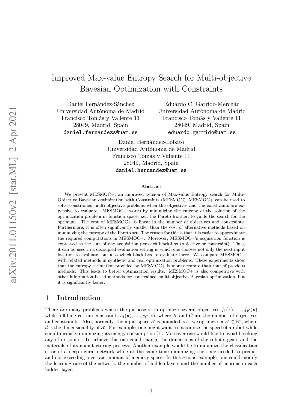 We present MESMOC+, an improved version of Max-value Entropy search for Multi-Objective Bayesian optimization with Constraints (MESMOC). MESMOC+ can be used to solve constrained multi-objective problems when the objectives and the constraints are expensive to evaluate. MESMOC+ works by minimizing the entropy of the solution of the optimization problem in function space, i.e., the Pareto frontier, to guide the search for the optimum. The cost of MESMOC+ is linear in the number of objectives and constraints. Furthermore, it is often significantly smaller than the cost of alternative methods based on minimizing the entropy of the Pareto set. The reason for this is that it is easier to approximate the required computations in MESMOC+. Moreover, MESMOC+'s acquisition function is expressed as the sum of one acquisition per each black-box (objective or constraint). Thus, it can be used in a decoupled evaluation setting in which one chooses not only the next input location to evaluate, but also which black-box to evaluate there. We compare MESMOC+ with related methods in synthetic and real optimization problems. These experiments show that the entropy estimation provided by MESMOC+ is more accurate than that of previous methods. This leads to better optimization results. MESMOC+ is also competitive with other information-based methods for constrained multi-objective Bayesian optimization, but it is significantly faster.