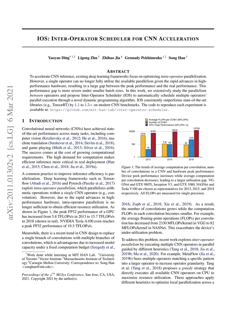 IOS: Inter-Operator Scheduler for CNN Acceleration