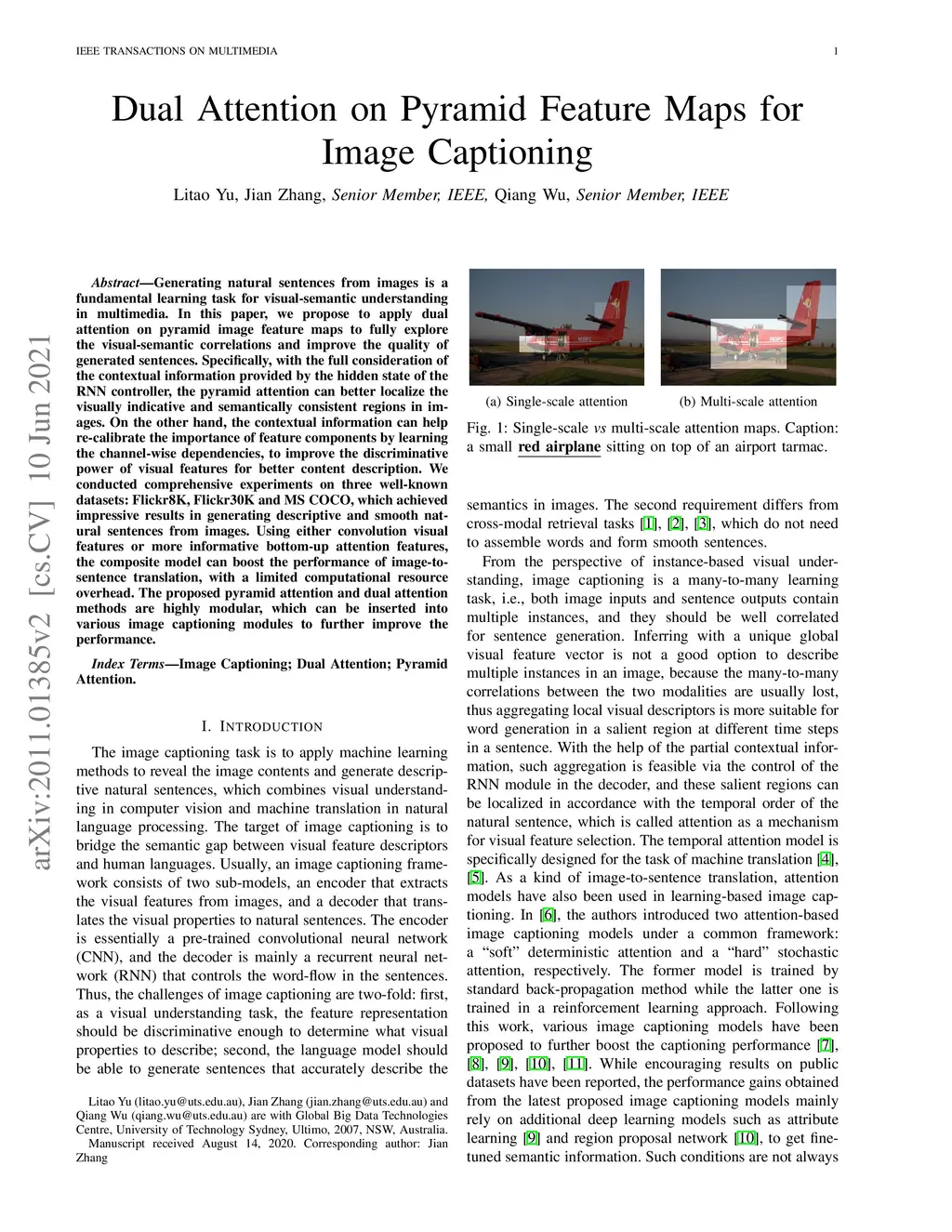 Dual Attention on Pyramid Feature Maps for Image Captioning