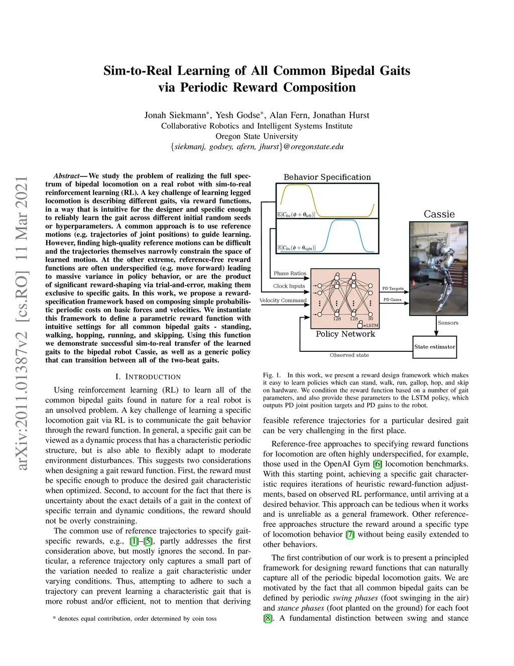 Sim-to-Real Learning of All Common Bipedal Gaits via Periodic Reward
