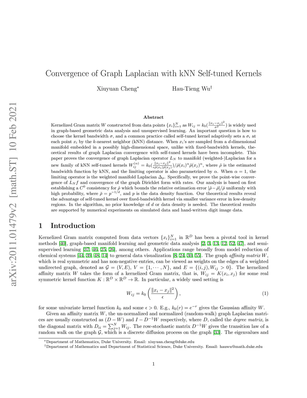 Convergence of Graph Laplacian with kNN Self-tuned Kernels